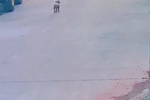 狗子迎接主人太兴奋,不小心掉沟里
