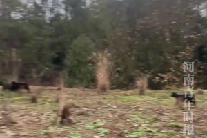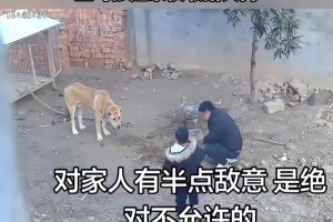 小男孩靠近大狗,男子察觉狗狗异常,立马抄家伙应对