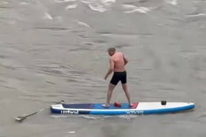 大爷年后光膀子划船炫技,船桨掉水,让大家当没看见